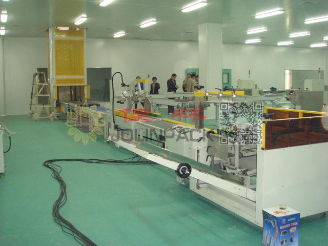 軟袋后包裝線主要工藝流程:自動開箱→合格證、說明書投入→隔板投放→整齊下袋→接袋→燈檢→理袋機器人理袋→包裝機→裝箱→稱重剔除機→折蓋封箱機→轉向輸送機→噴碼及監(jiān)管碼賦碼→監(jiān)管碼復核→剔除機→轉向輸送機→提升機→自動輸送到相鄰倉庫