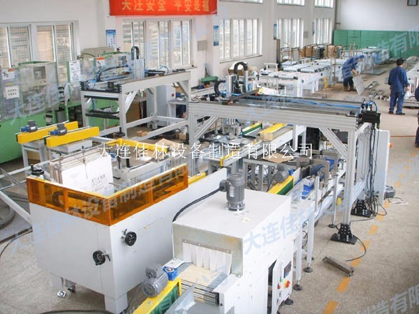 熱縮包裝系統(tǒng):產(chǎn)品從全自動收縮包裝機(jī)處收縮包裝后輸送到裝箱機(jī)處把產(chǎn)品裝到紙箱里進(jìn)行紙箱的封箱捆扎過程,完全無人化操作,包裝美觀,節(jié)省人工,提高自動化程度。