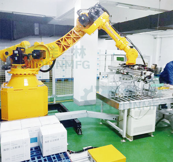 このロボットは六軸ロボットであり、多角度で仕事をすることができ、化學(xué)工業(yè)、飲料、食品、ビール、プラスチック、エアコンなどの生産企業(yè)に幅広く適応し、段ボール、袋、缶、箱、瓶詰めなどの様々な形狀の製品を梱包し、出荷している。同時に溶接と組み立ての仕事に適用して、構(gòu)造は簡単で、メンテナンスしやすい;主要構(gòu)成部品が少ないため、メンテナンス費用が低い。ロボットは狹い空間に設(shè)置することができて、有効に使うことができます;すべての制御はコントロールボックスの畫面上で操作可能であり,操作は非常に簡単である。全天候作業(yè)ができて、機械を配備して多くの人工に取って代わることができて、人員を減らして効果を増加する目的を達(dá)成します!